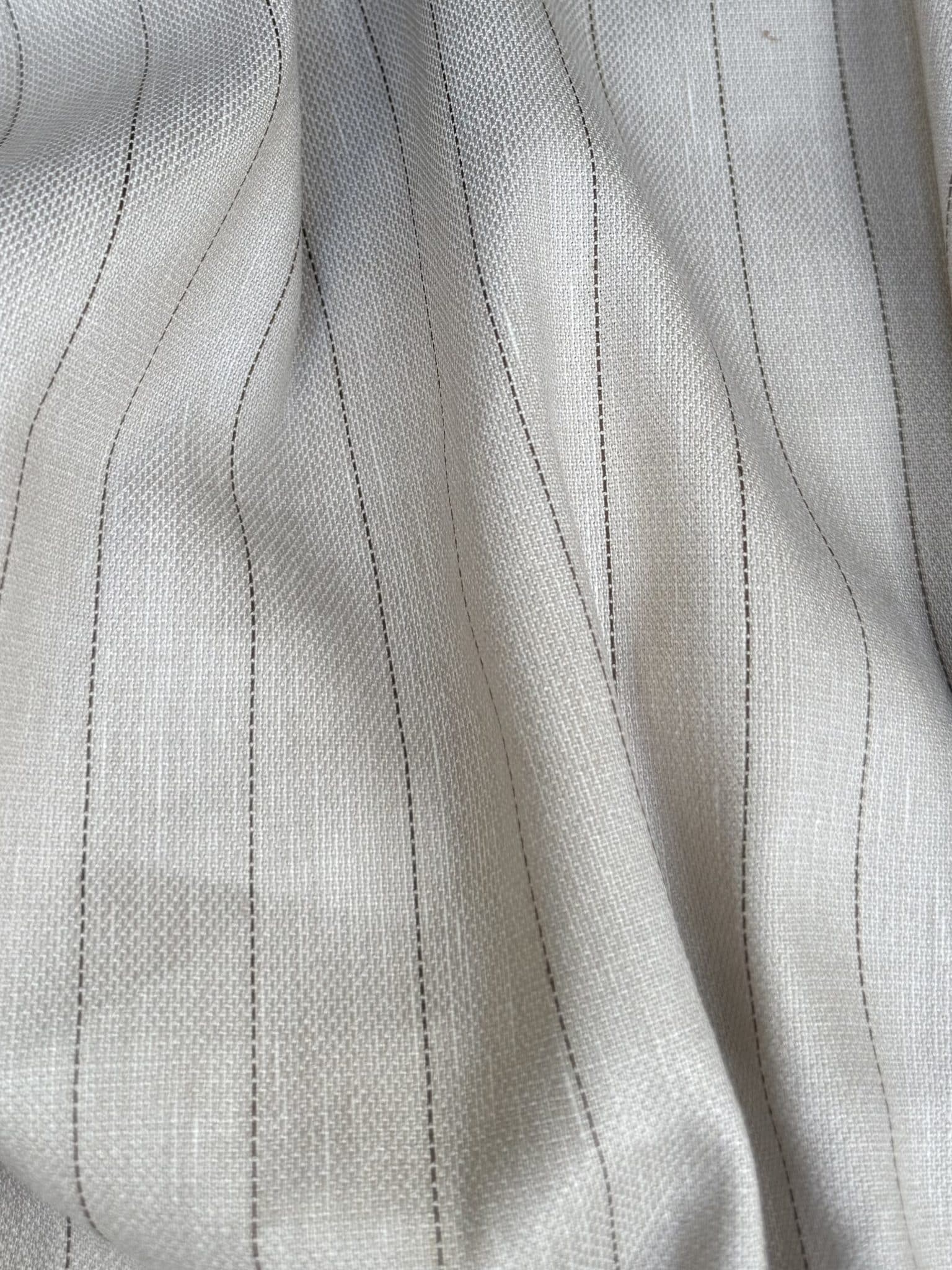 FABIO s’inscrit pleinement dans l’univers du tissu tailleur, avec une élégance inspirée des codes du vestiaire masculin revisité. Son motif gessato aux fines rayures verticales apporte une allure sophistiquée et structurée, idéal pour des pièces au tombé impeccable.