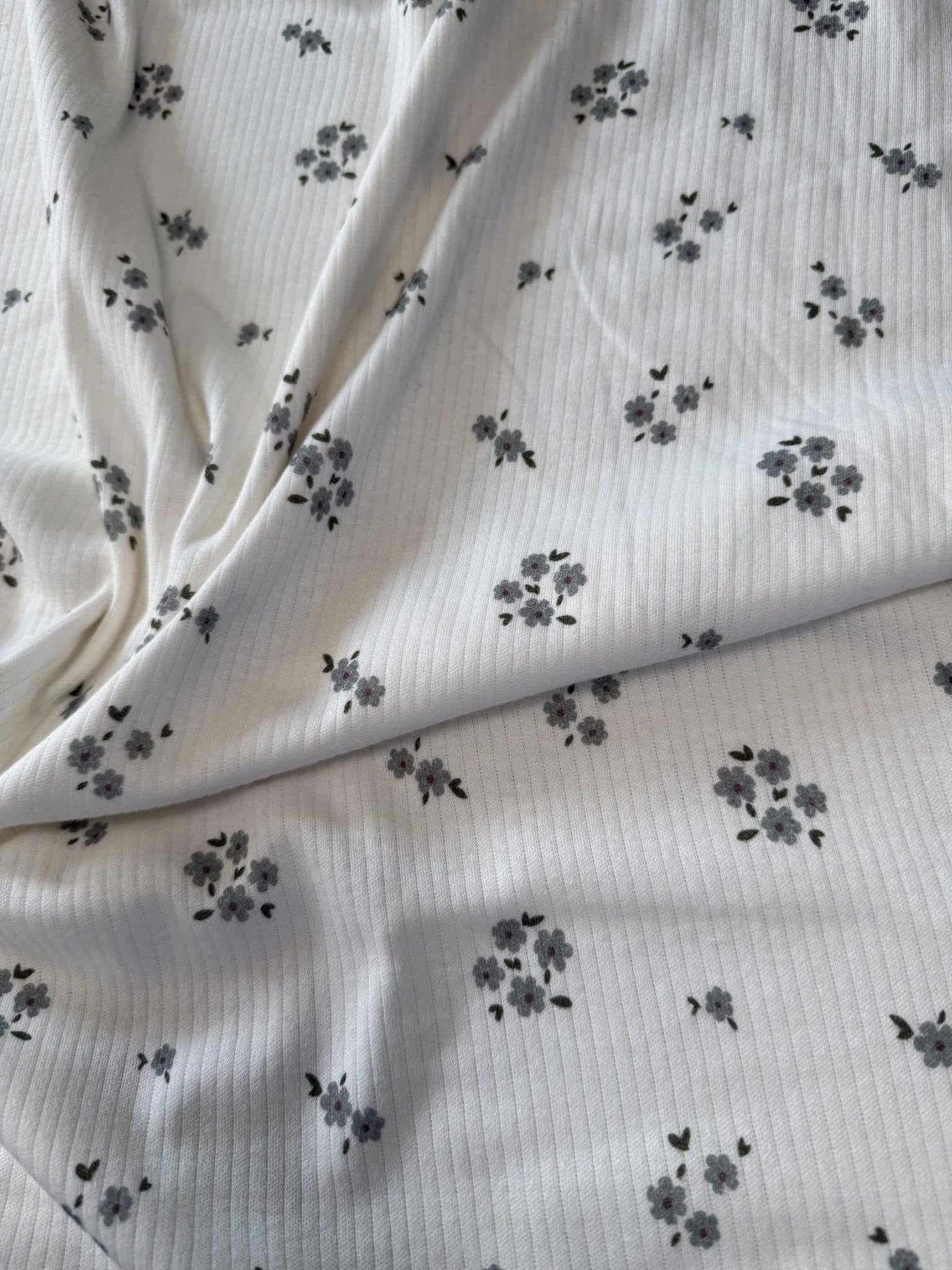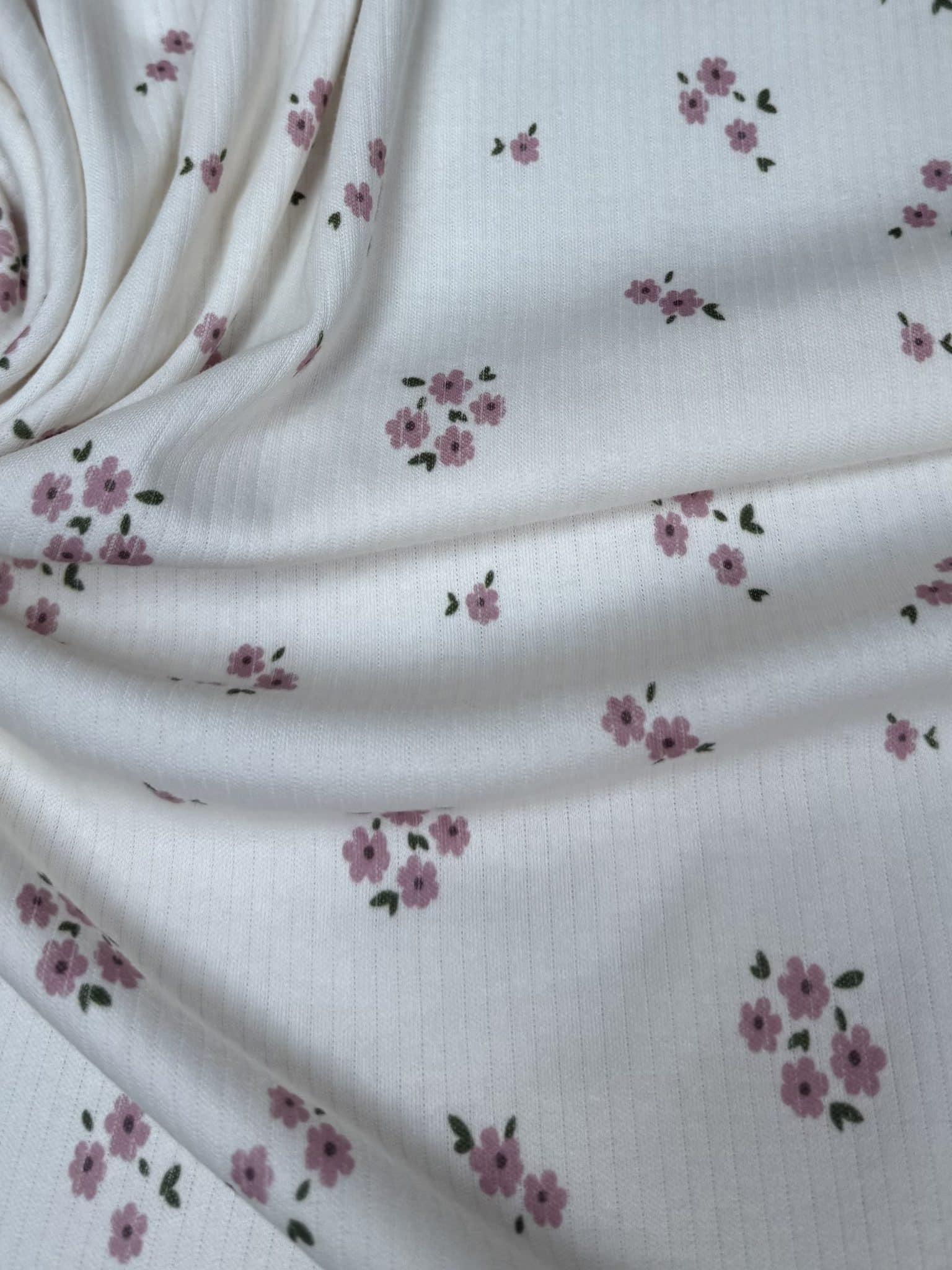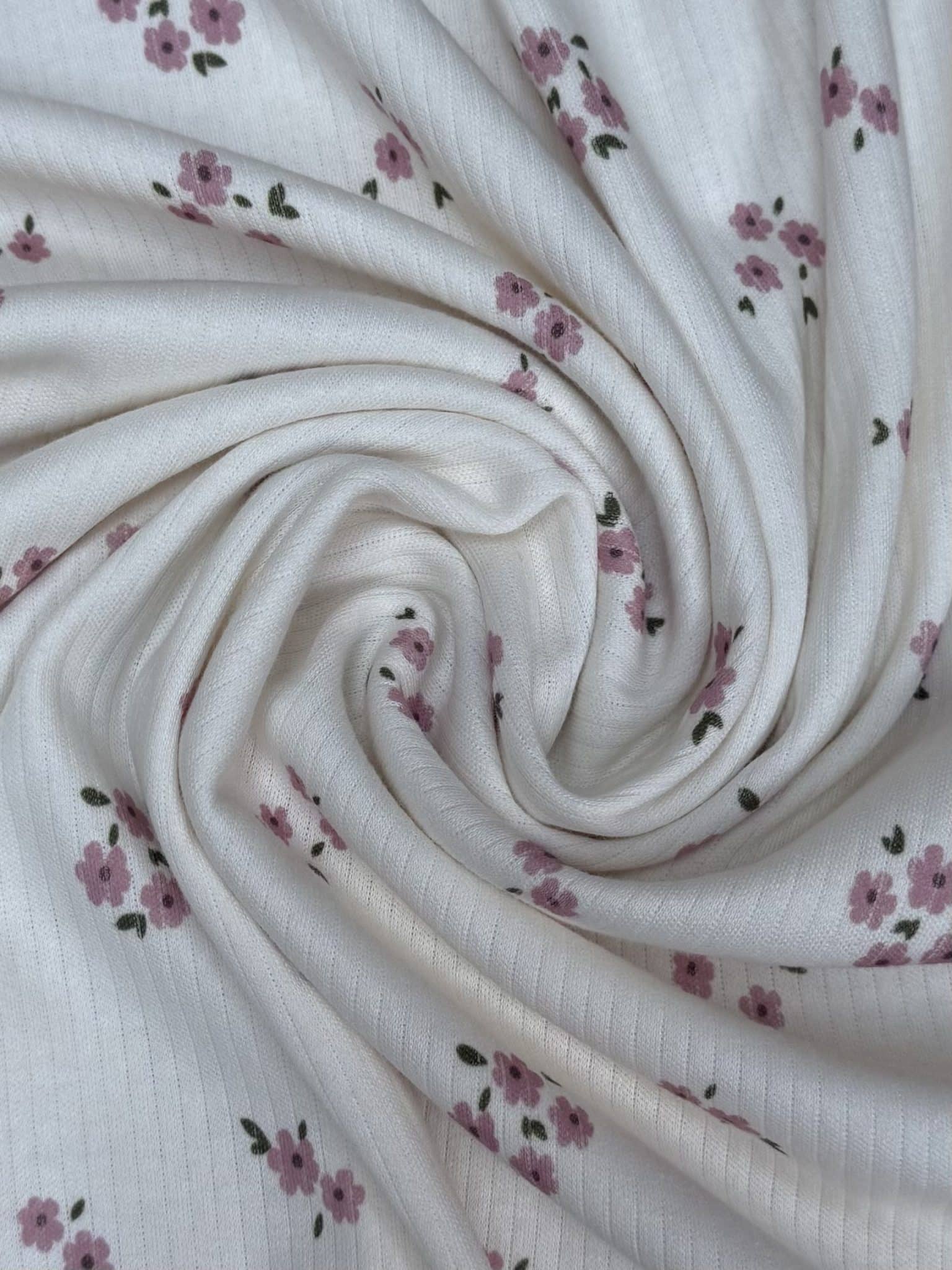 [ LILOU ] I TISSU MAILLE JERSEY CÔTELE FLEURI
